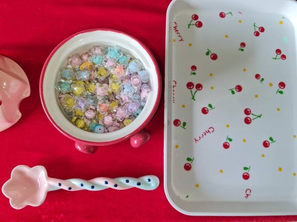 OUR ICE CREAM SCOOP CONTAINER , WITH LARGE STARS , WILL GIVE YOU YOUR STARTING NUMBER OF BAGS FOR YOUR BRACELETS LUCKY DIP GAME, IT ALSO HAS YOUR LUCKY GUMBALL CHARMS AND YOUR LUCKY SANRIO CHARMS, 1 SCOOP = TO APPROXIMATELY 5 TO 6 CHARMS OR BAGS.