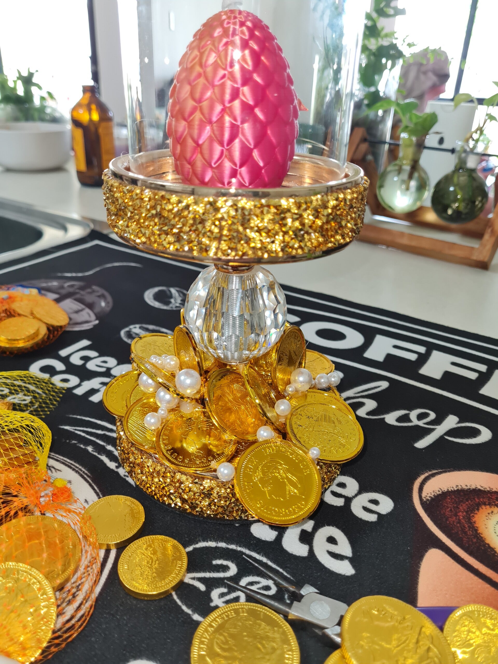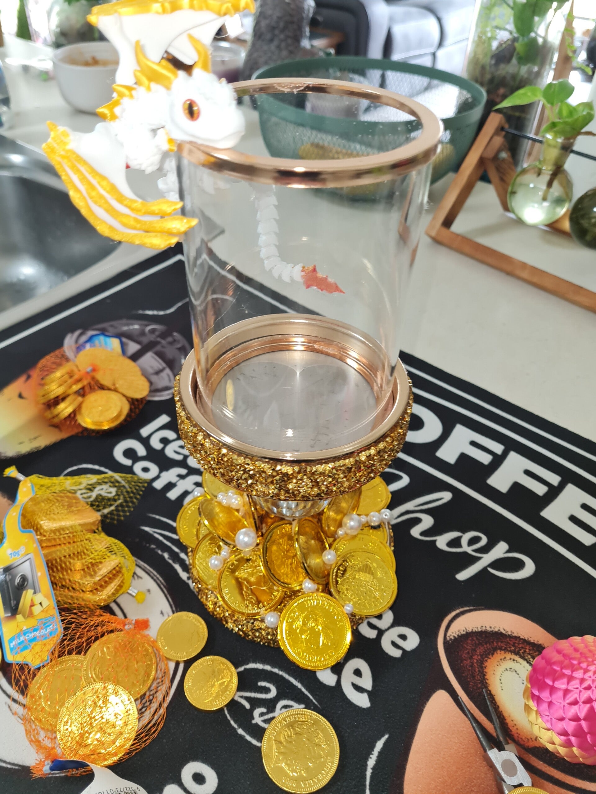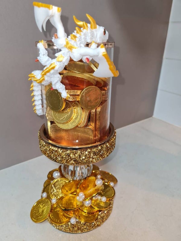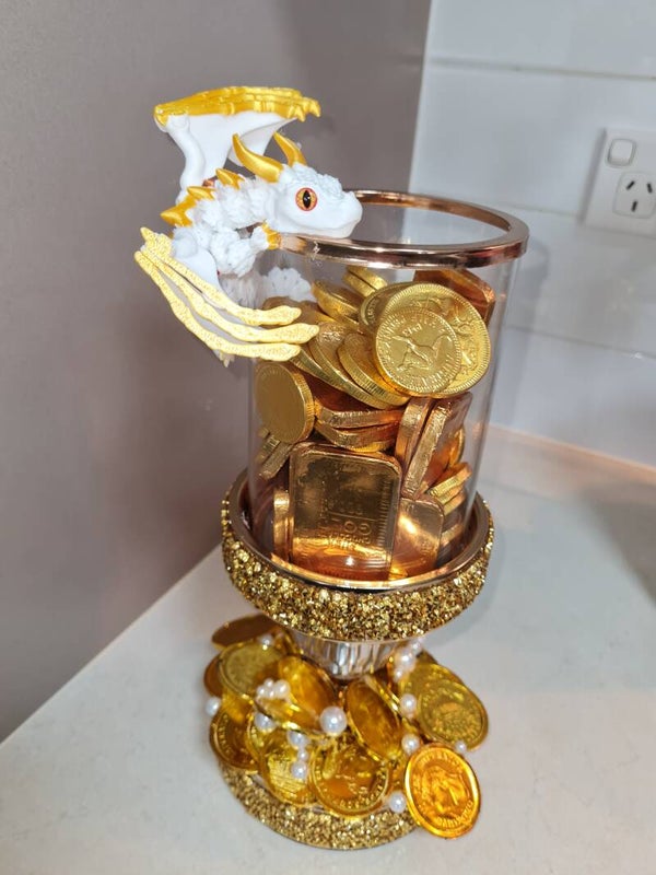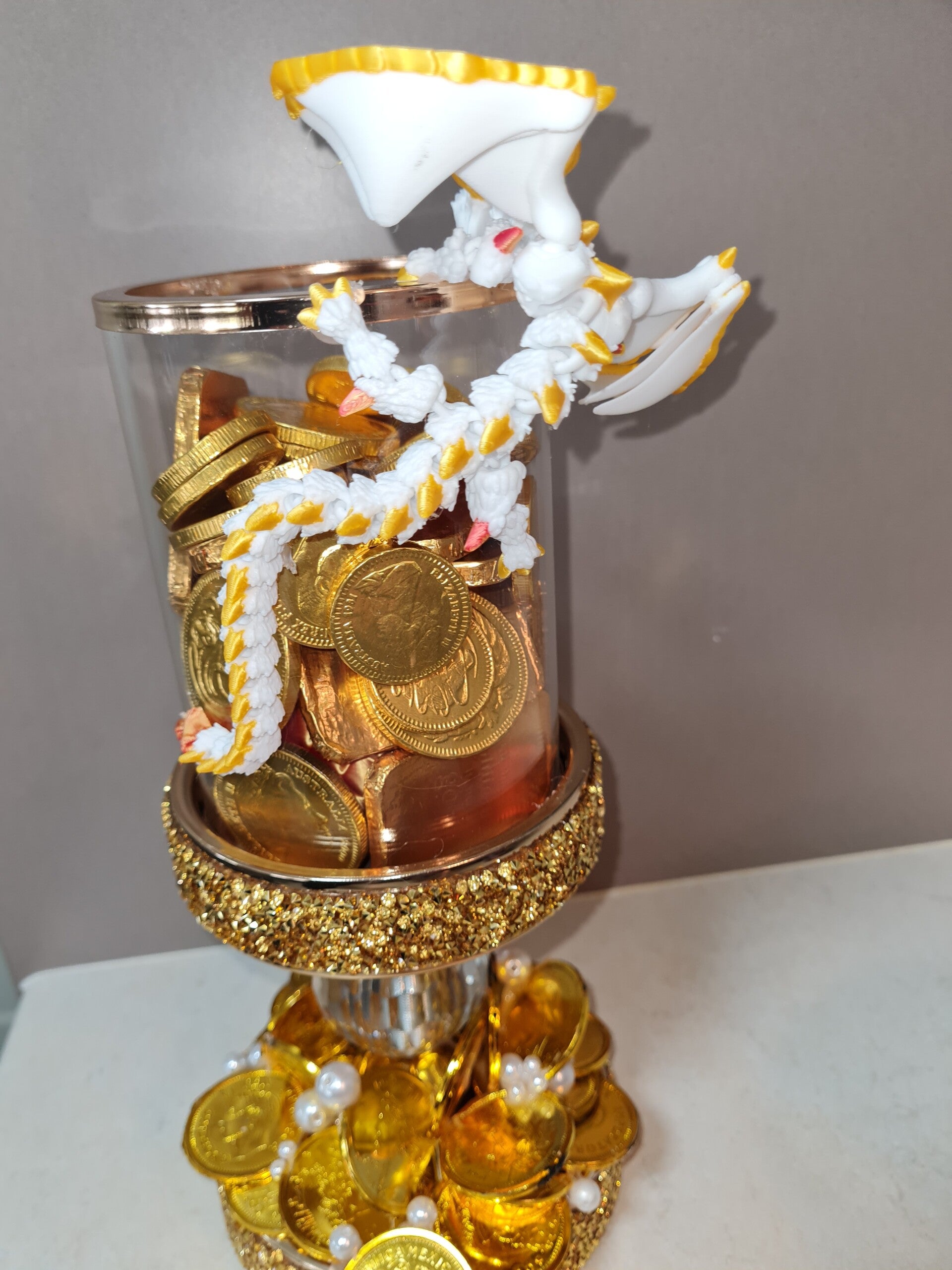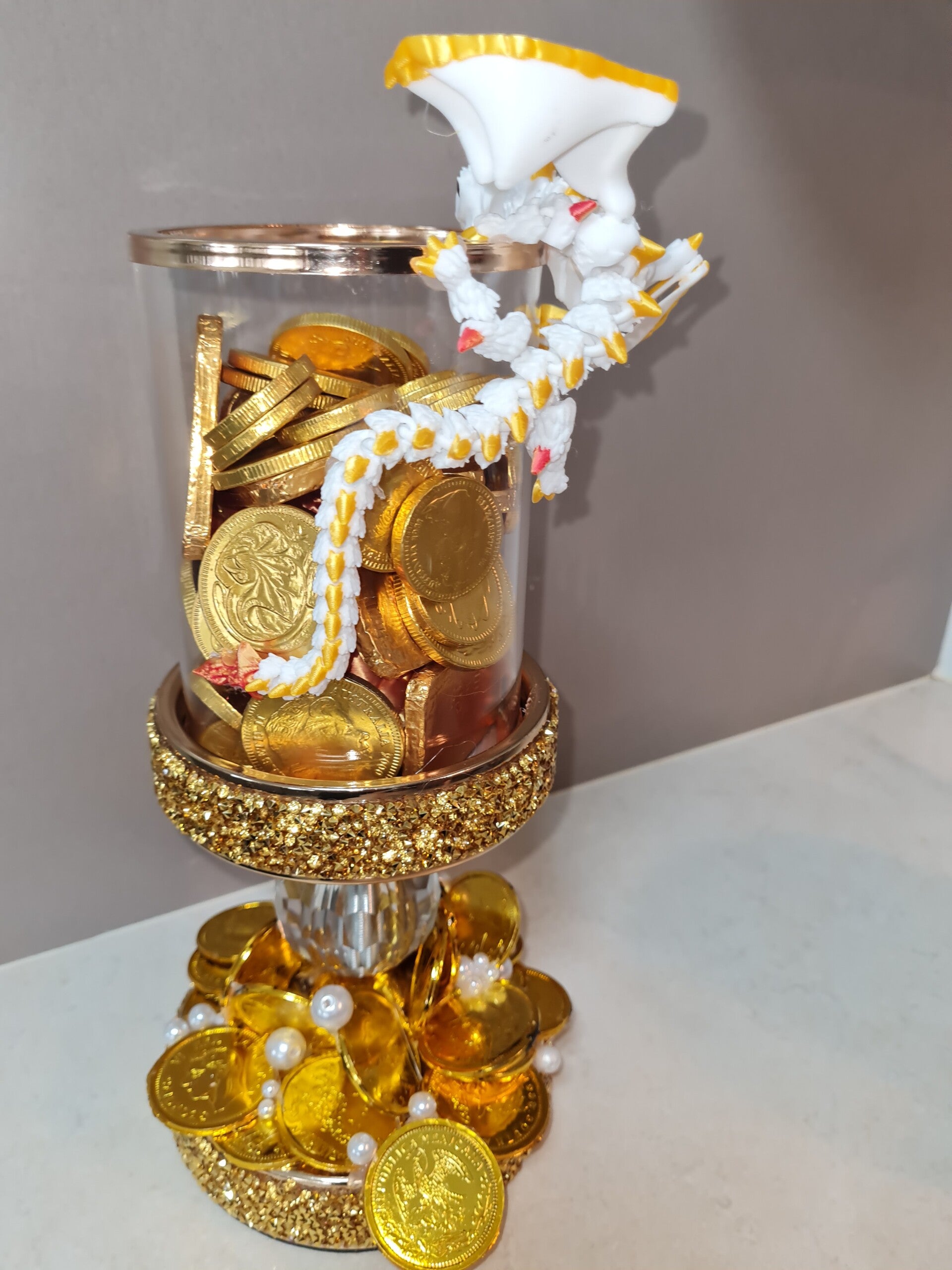 Golden customised candle holder with white dragon