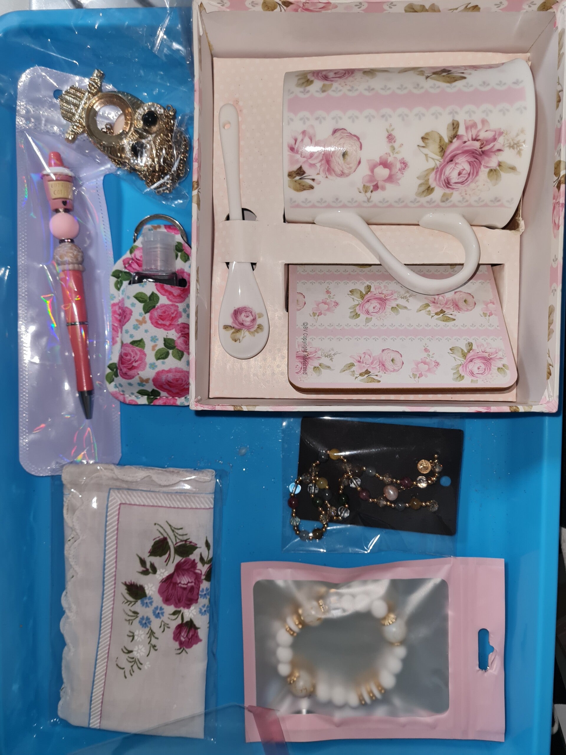 Our hampers consist of multiple different stationery items, household items, arts and craft, manicure items, jewellery, personalised items, hair and grooming items, cosmetics, toiletries and bathroom items.
