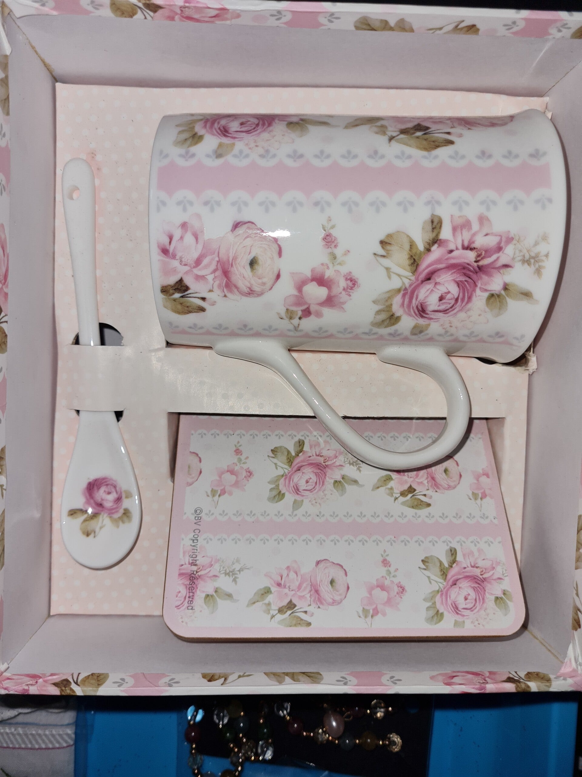 Cup and coaster set featuring Owl pendant, lots of goddies inside
