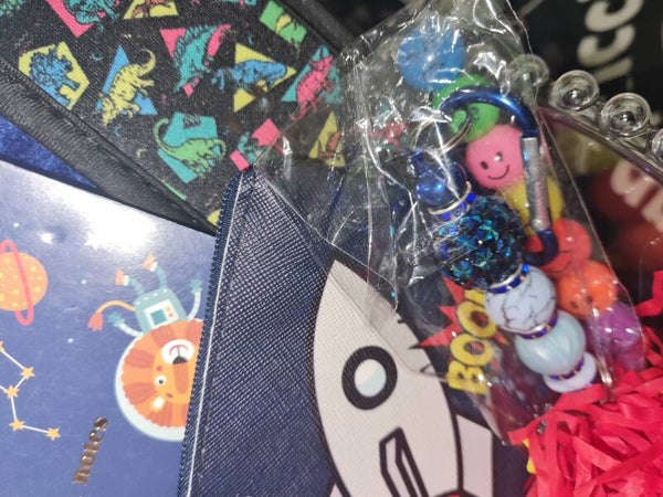 Our hampers consist of multiple different stationery items, household items, arts and craft, manicure items, jewellery, personalised items, hair and grooming items, cosmetics, toiletries and bathroom items.